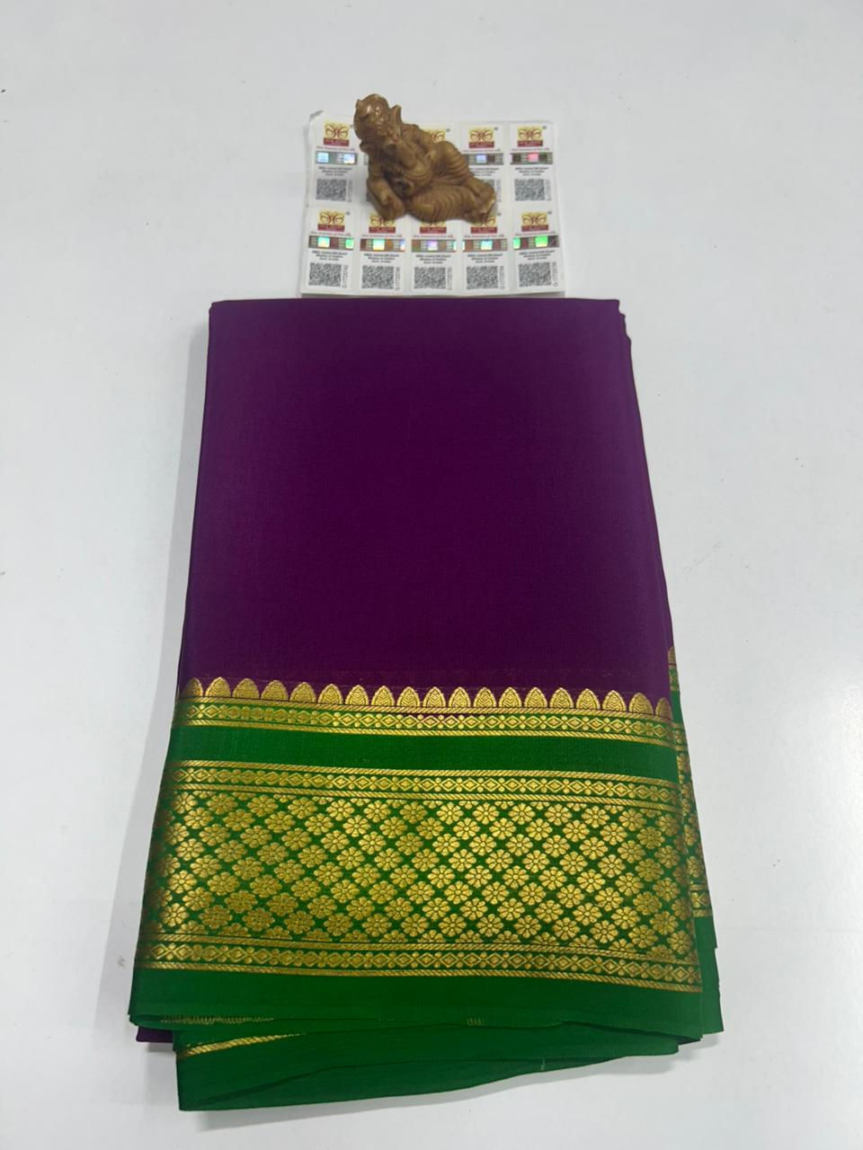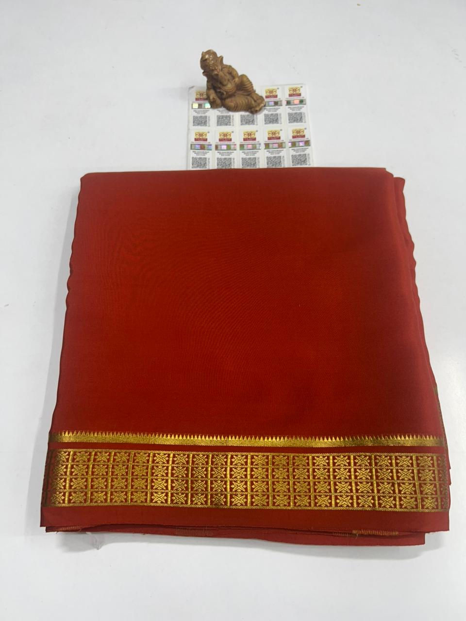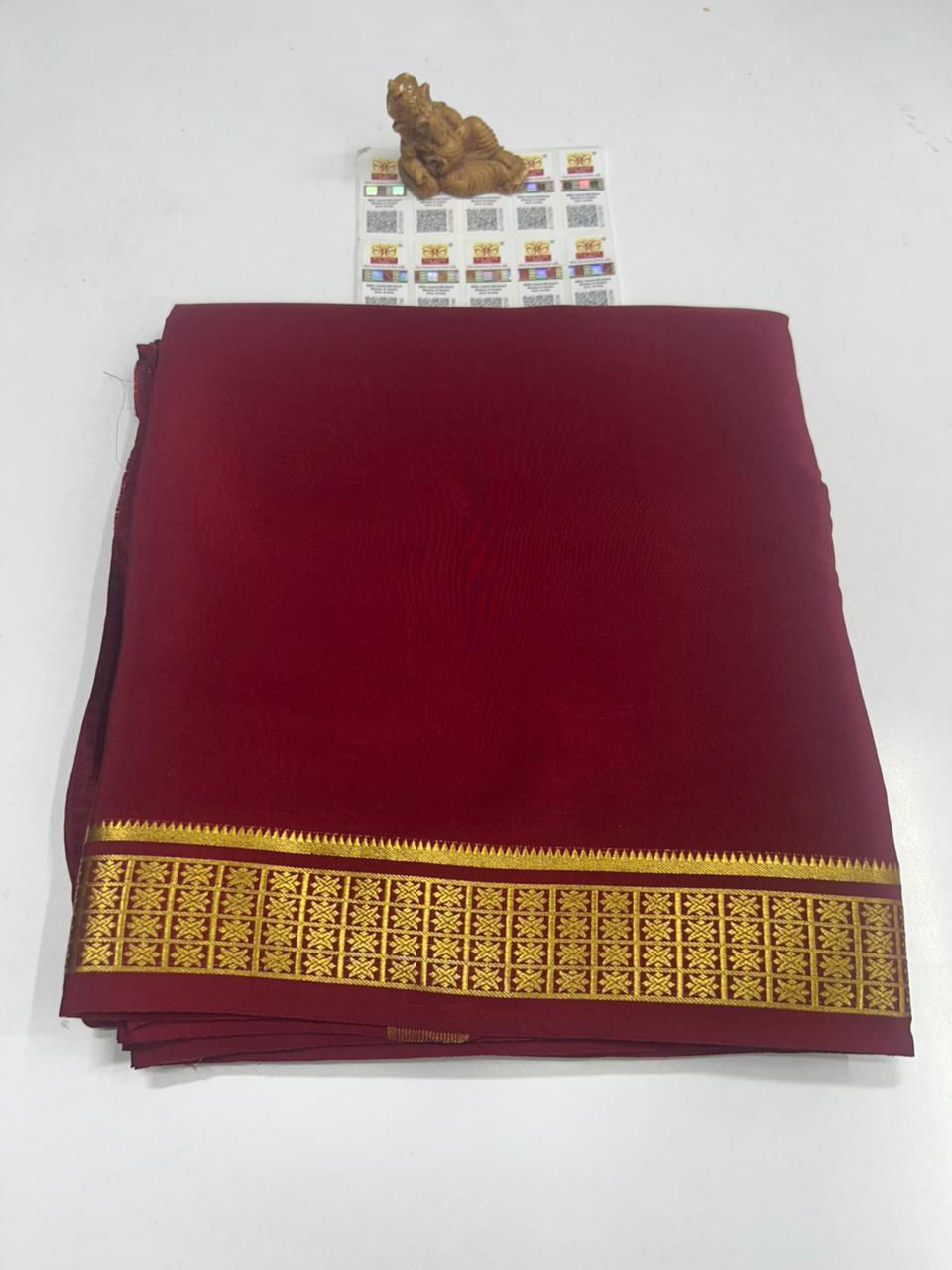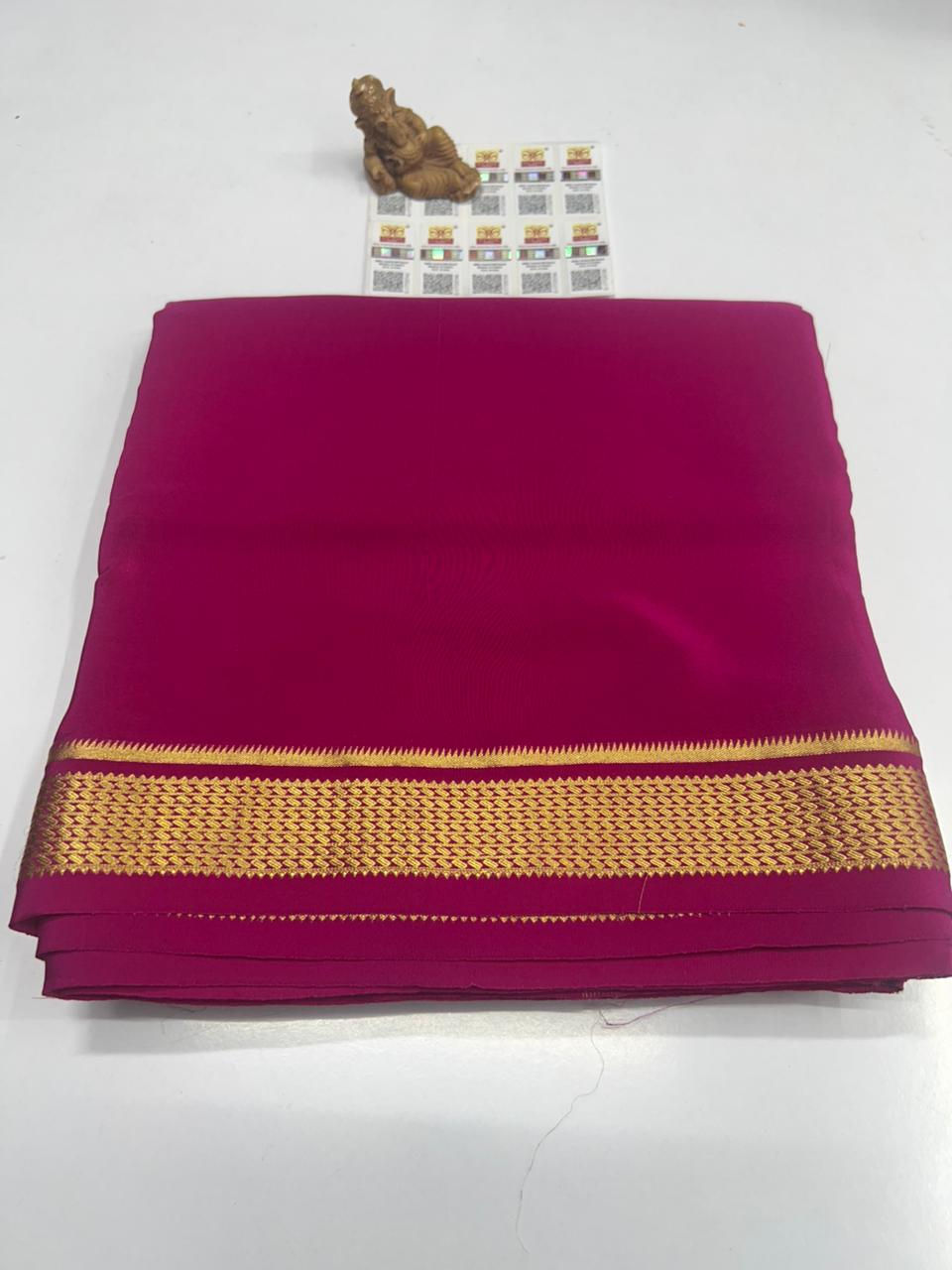 Finest Quality Traditional Pure Mysore Crepe Silk Saree Comes In Classic Plain Weave & Contrast Border